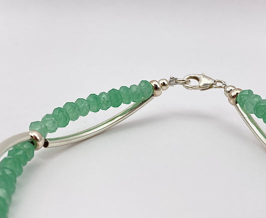 Bracelet Aventurine perles facettes+tubes argent 925